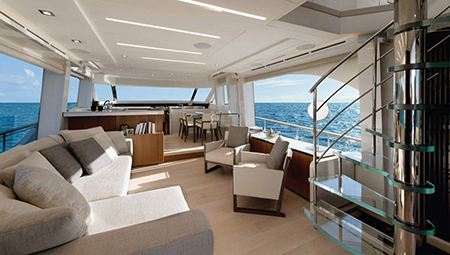 Stylistic evolution and the focus on architectural details distils the brand’s design vision into features of the decor, such as the Art Deco-inspired curves and the large helical staircase linking the main deck to the lower deck, towards the interior layout’s centre of gravity. The goal is to create a new harmony that establishes the ideal sophisticated atmosphere on board, in line with the brand’s contemporary “Just like Home” concept that is now a synonym for comfort, timeless design and craftsmanship.