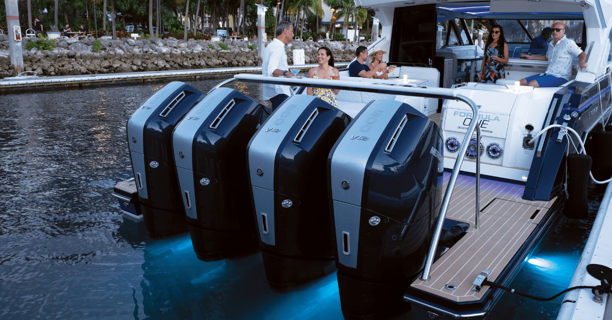 When Formula began design work on the 500 SSC three years ago, their initial plan was to equip it with five Mercury outboards. But Mercury- who enjoys a close relationship with Formula- suggested a new, more powerful outboard they were working on–a 7.6L, 12-cylinder 600-hp powerhouse.