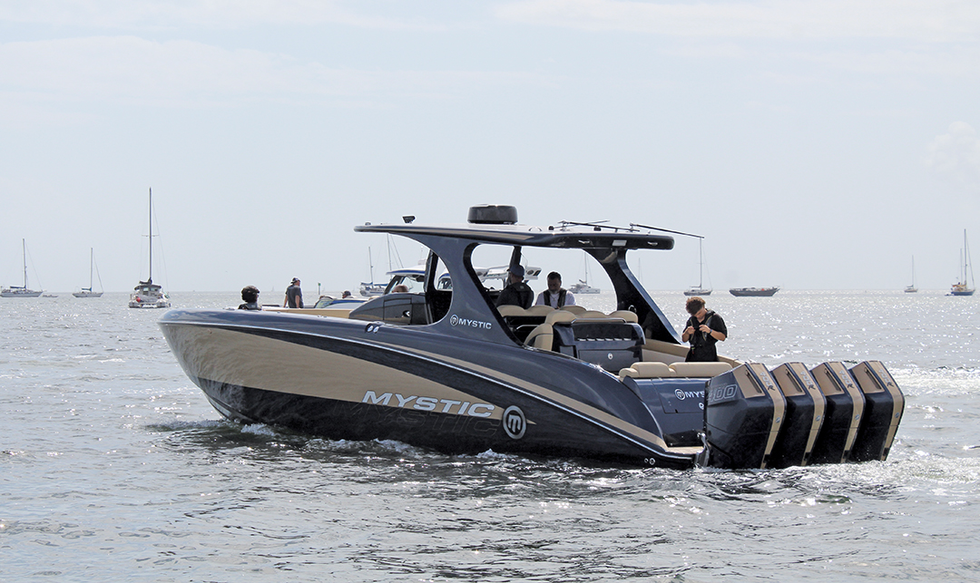 Mercury Racing hosted its own event during the Miami Boat Show at Grove Harbour Marina featuring new center-console models from Mystic Powerboats and Marine Technology Inc. Potential customers were able to take test rides featuring outboards from the engine builder.