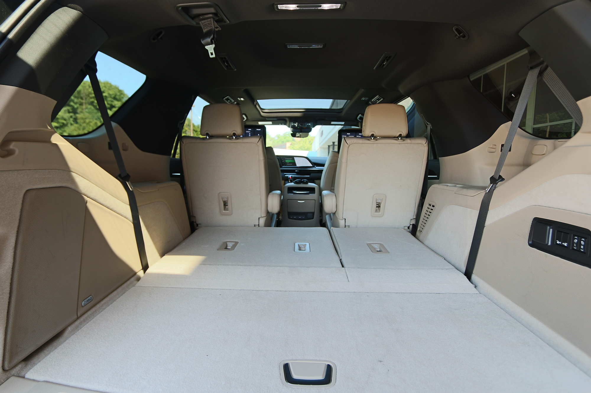 In the new Escalade, Cadillac broke tradition and partnered with AKG – known for creating studio microphones and headphones – to create a recording room listening experience using 14 or the optional 28 channel amplifier and a whopping 19/36 speakers. Small tweeter speakers are hidden everywhere, even in the seats. High and low sounds come from everywhere and literally become music inside the listener’s head.