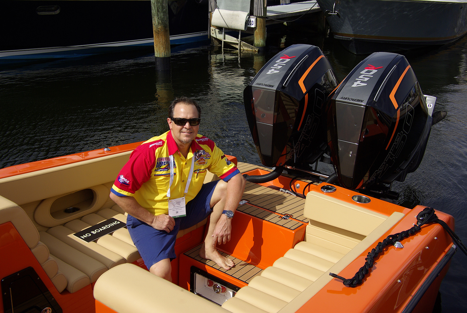 Florida Representative Kevin Peterson enjoys the water. The excitement was overwhelming around the new 430VRX. This years line up includes the 22 Punisher, 230 SC, 260VR, 290 SC, VR1, 322 SC, Raptor, 420 SC, and 430VRX.