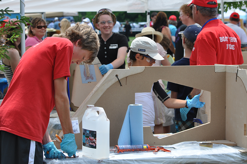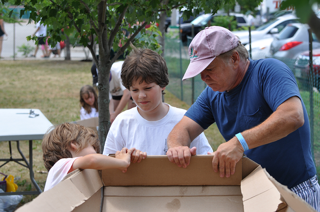 For the kids, volunteers organized in advance pre-cut patterns for ten wooden Dories. Parents and children teamed up, guided by Eric Seepa, and assembled the pre-made parts in about two hours into a complete boat right there on site. The Cardboard Boat Building Parade was also popular with children eight and older making their own cardboard boat and then attempting to float it between two docks. It was great fun and laughs for all participants and spectators.
