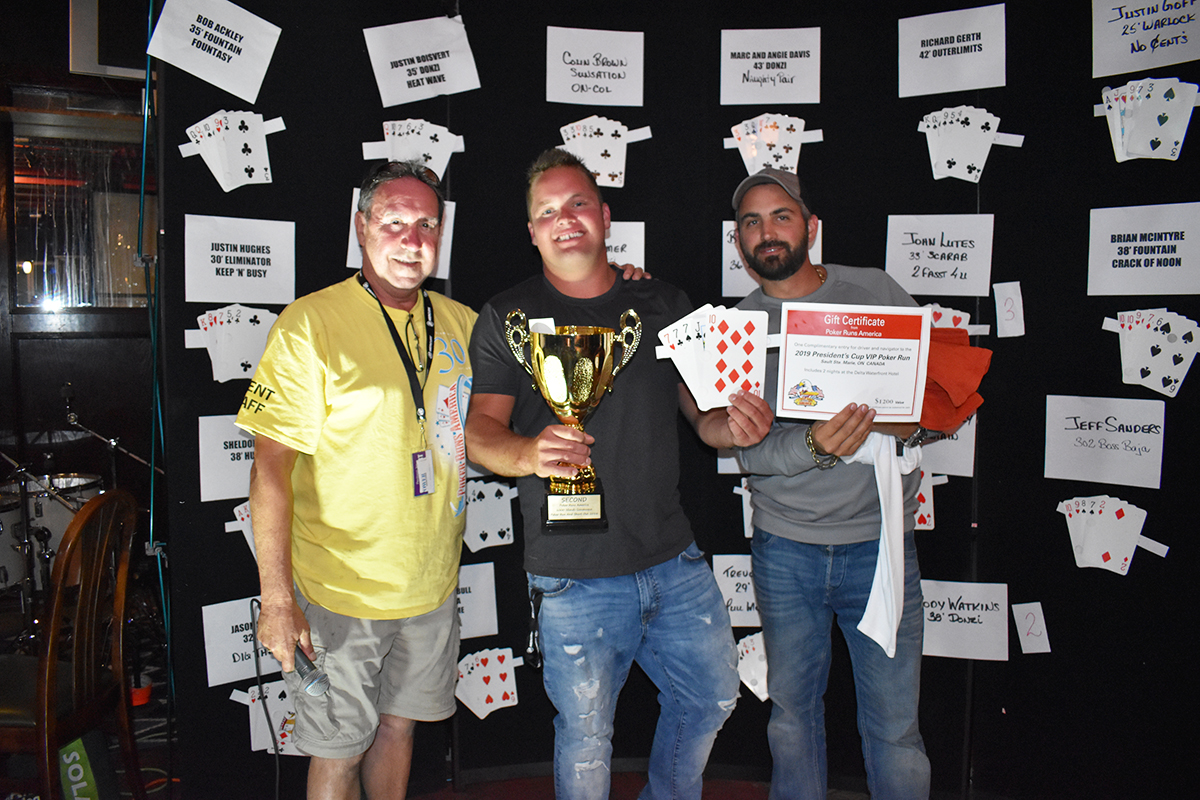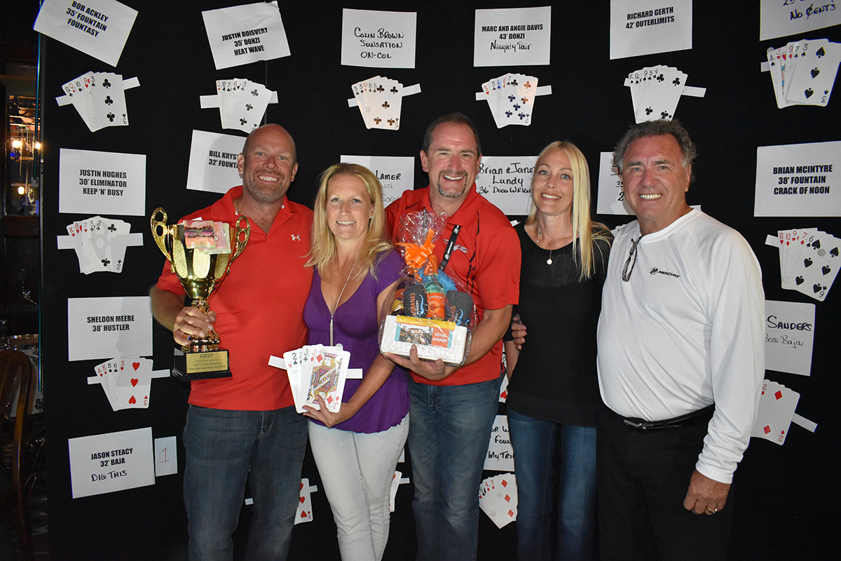 After the card hands were revealed, Jason Steacy and his 32’ Baja Dig This took home the gold with a 222JJ hand. Second place went to Cody Watkins in his 38’ Donzi with 777J10 and third came John Lutz in a 33’ Scarab 2 Fasst 4 U, with a pair of queens.
