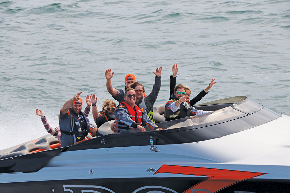 Pat Bray, Dave Turnbull, Chris Lamer, Neil Parson and Colin Brown for their integral roles in making this event happen. Dave Alford for placing markers on the water, keeping the fleet safe during the shootout, Ken Kehoe of Kehoe Marine Construction for supplying the barge used for radar during the shootout, Thousand Islands Boat Museum, and Kouri’s Kopters/1000 Islands Helicopter Tours.